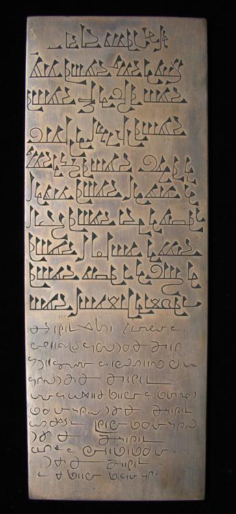 « Ornate form of Arabic and Pahlavi, Copperplates of Kollam, 849, South Asian ».