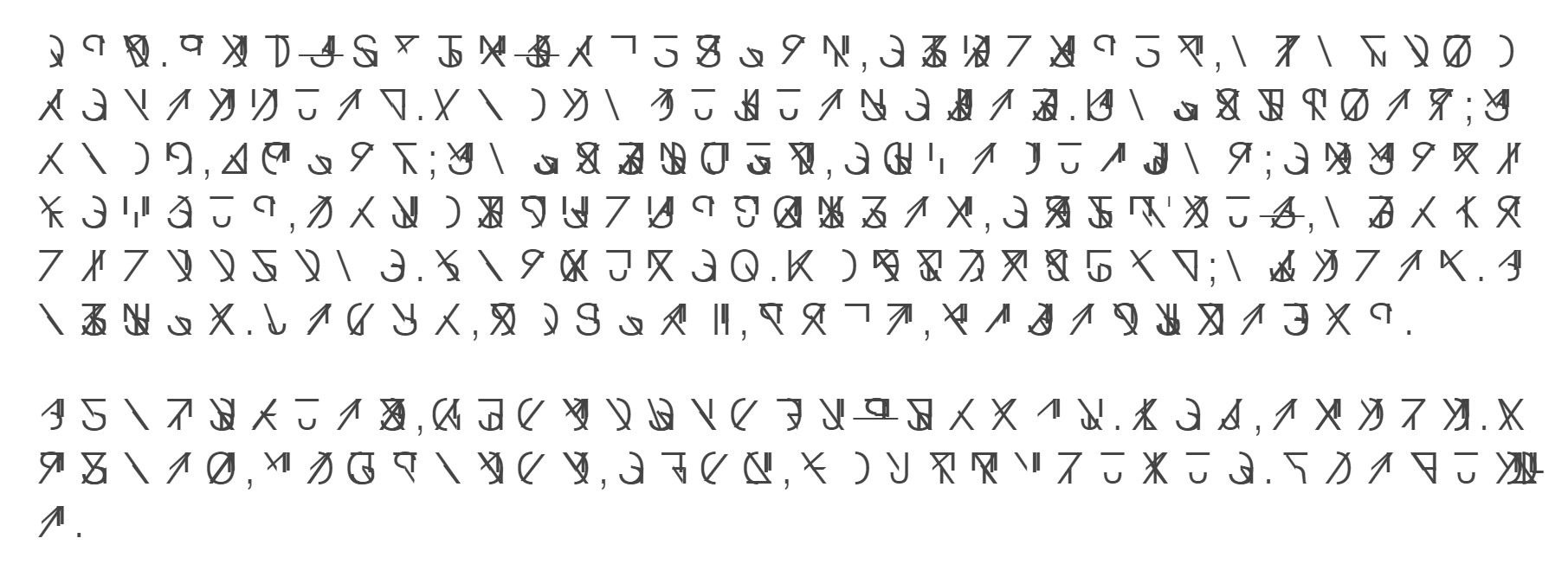 Pour finir s’est installé, au cours de la création sur Glyph, l’envie de dépasser le contour de l’espace de chaque glyphe pour créer des réseaux-partitions, où les différents symboles viendraient se superposer de manière à former un ensemble de phrasés, un assemblage toujours diffèrent ouvrant le champ de manoeuvre et les possibilités de ce système.