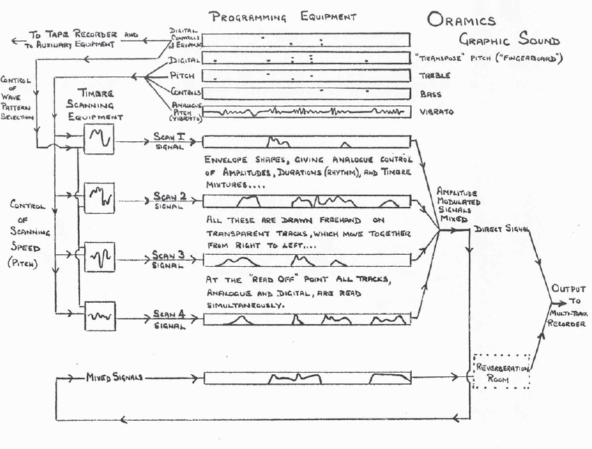 « Daphne Oram : I have a new technique completely one that I've evolved over the years and it's still evolving, it's got a long way to go yet, which I call Oramics and that is using graphic representation of sound.
