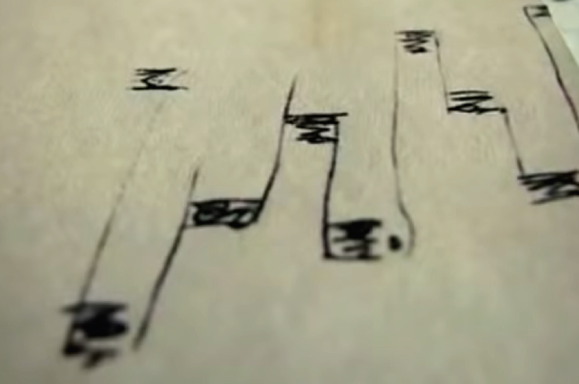Extraits montrant les notes de Delia Derbyshire, musicienne